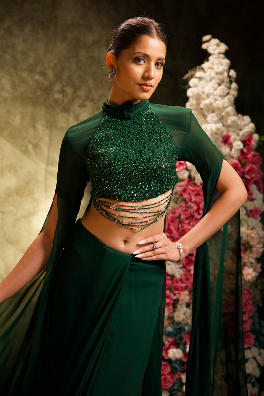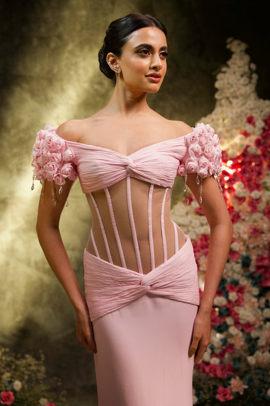 Baby pink satin lehenga & embroidered blouse with cloud dupatta