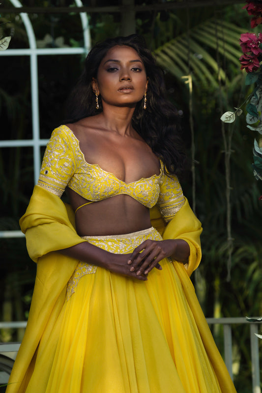 Sunehra tissue silk-georgette lehenga