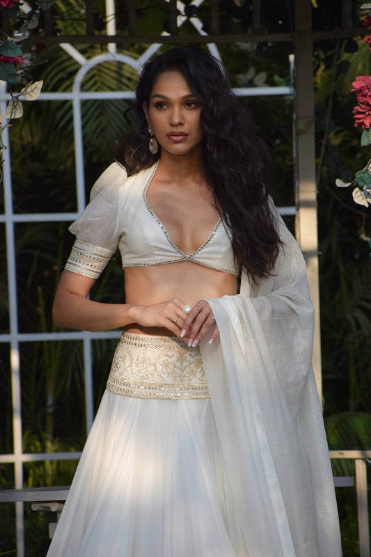 White georgette lehenga
