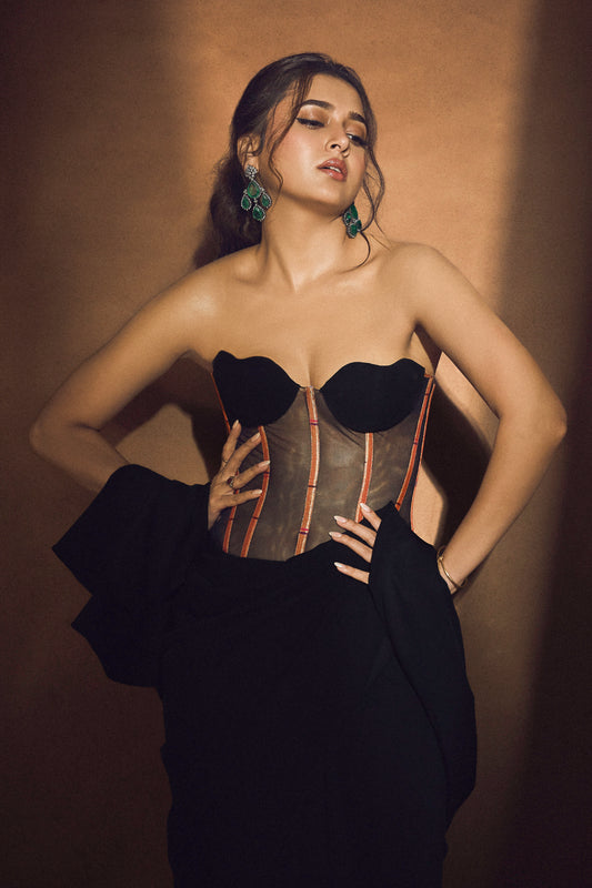 Tejasswi prakash in black paithani corset and pre-stitched saree set